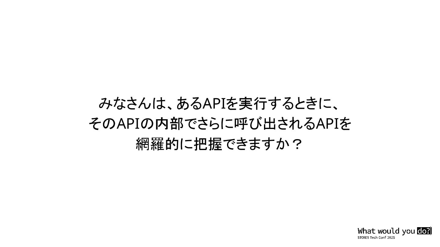 みなさんは、あるAPIを実行するときに、 そのAPIの内部でさらに呼び出されるAPIを 網羅的に把握できますか?