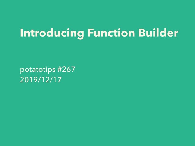 Introducing Function Builder potatotips #267 2019/12/17