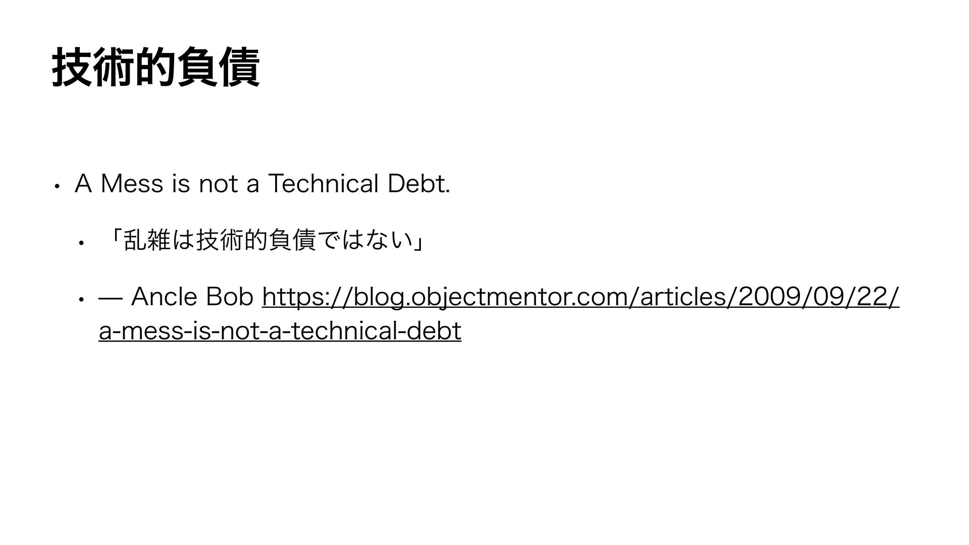 https://blog.objectmentor.com/articles/2009/09/22/a-mess-is-not-a-technical-debt