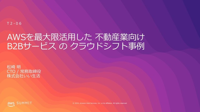 rights reserved. S U M M I T 今後の展望 当社のクラウド・ジャーニーはまだ始まったばかり コスト最適化、リリースサイクル、サービス品質、チームアジリティなどの数値評価はこれから オンプレミスで稼働中のコアプラットフォームの移行がまだ残っている ここまでの実績で得られた知見と経験をもとにより良い形でのマイグレーションを実現したい 人材と組織構成のあり方も模索中 クラウドを乗りこなすための組織編制と役割についてもより良い形を見つけていきたい