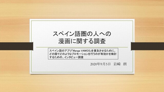 4,966 31.2 (117) 3 スペイン 4,699 43.9 (19) 4 アルゼンチン 4,436 32.4 (110) 5 ペルー 3,198 29.1 (138) 6 ベネズエラ 2,888 30.0 (124) 7 チリ 1,872 35.5 (83) 8 グアテマラ 1,724 23.2 (178) 9 エクアドル 1,708 28.8 (140) 10 ボリビア 1,135 25.3 (160) 11 キューバ 1,133 42.1 (37) 12 ホンジュラス 958 24.4 (165) 13 パラグァイ 695 29.7 (128) 14 ニカラグア 646 27.3 (148) 15 エルサルバドル 642 27.7 (145) 16 コスタリカ 499 32.6 (109) 17 パナマ 417 30.1 (122) 18 ウルグァイ 344 35.5 (85) 19 ドミニカ共和国 7 34.9 (87) 上記ラテン圏計 44,581 世界のシェア 5.9% 世界合計 759,469 (194) 日本 12,720 48.6 (2) 平均年齢(順位) 人口・平均年齢からプロモーション対象国とし て、1.2.4.5の4ヵ国が有望と考えた。 今回インタヴューできた国 メキシコ コロンビア(2名) ペルー(2名) ベネズエラ