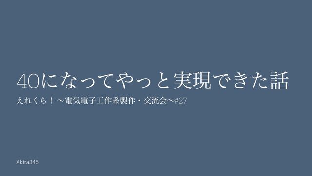Akira345 ͑Ε͘Βʂ ~ ిؾిࢠ࡞ܥ࡞ɾަྲྀձ ~ #27 40ʹͳͬͯͬͱ࣮ݱͰ͖ͨ