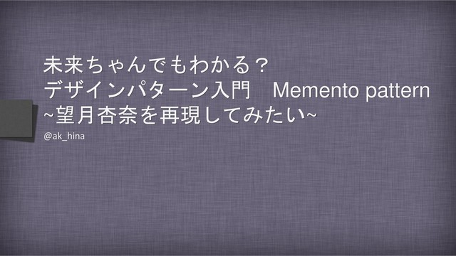 未来ちゃんでもわかる? デザインパターン入門 Memento pattern ~望月杏奈を再現してみたい~ @ak_hina