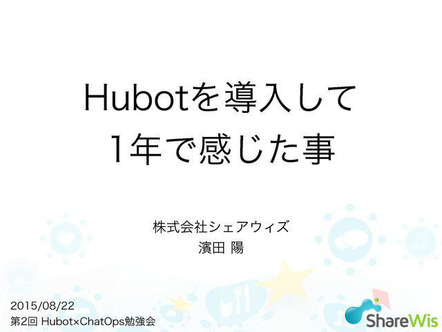 シェアウィズでのHubot活用事例や1年間Hubotを運用しての雑感をお話しています。