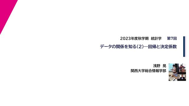 2023年度秋学期 統計学 第7回 データの関係を知る(2) ― 回帰と決定係数 (2023....