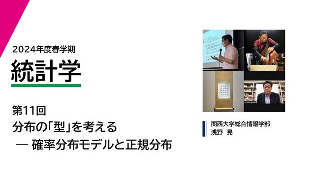2024年度春学期 統計学 第11回 分布の「型」を考える ー 確率分布モデルと正規分布 (2...