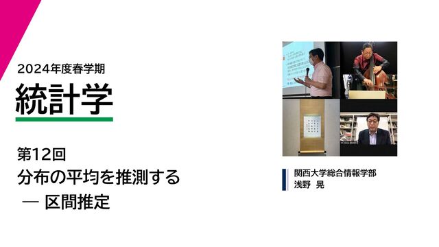 2024年度春学期 統計学 第12回 分布の平均を推測する ー 区間推定 (2024. 6. 27)
