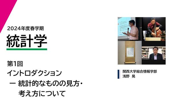 関西大学総合情報学部 浅野 晃 統計学 2024年度春学期 第1回 イントロダクション ー 統計的なものの見方・ 考え方について