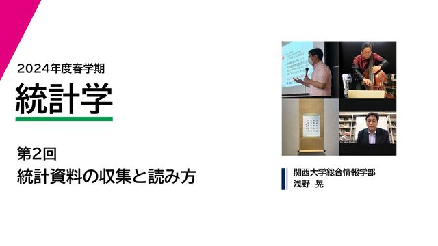 関西大学総合情報学部 浅野 晃 統計学 2024年度春学期 第2回 統計資料の収集と読み方