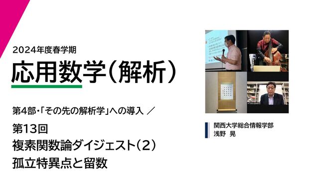 2024年度春学期 応用数学(解析)第13回 孤立特異点と留数 (2024. 7. 4)