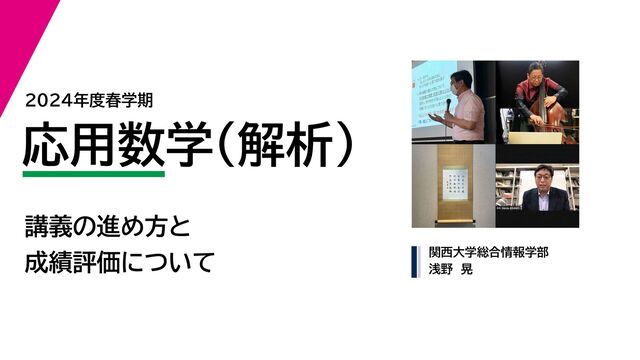 関西大学総合情報学部 浅野 晃 応用数学(解析) 2024年度春学期 講義の進め方と 成績評価について