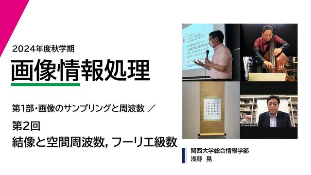 L / n の波を足し合わせて はず。 波長 L / n の波は f(x) = ∞ n=−∞ an exp i2π n L x という級数で書ける exp(i2π n L x) exp(−i2π n L x) と の組 プラスもマイナスも∞(プラスとマイナスの組で1つの波だから) この係数はどうやって求めるの? 続きは次回。 これがフーリエ級数なんですが,