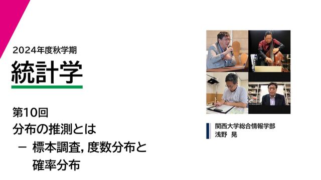 2024年度秋学期 統計学 第10回 分布の推測とは - 標本調査,度数分布と確率分布 (20...
