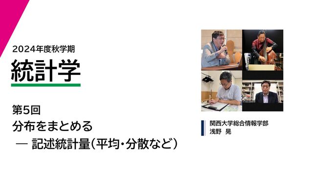 2024年度秋学期 統計学 第5回 分布をまとめるー記述統計量(平均・分散など) (2024....