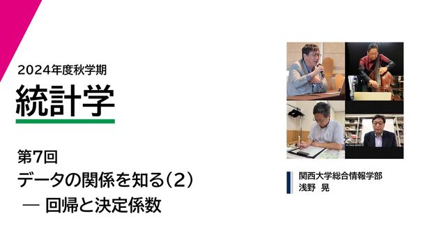 2024年度秋学期 統計学 第7回 データの関係を知る(2)ー 回帰と決定係数 (2024. ...