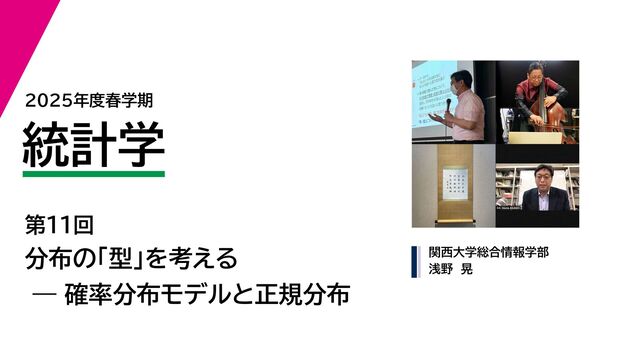 2025年度春学期 統計学 第11回 分布の「型」を考える ー 確率分布モデルと正規分布 (2...