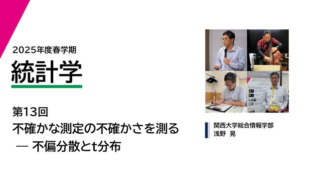 2025年度春学期 統計学 第13回 不確かな測定の不確かさを測る ー 不偏分散とt分布 (2...