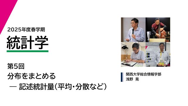 2025年度春学期 統計学 第5回 分布をまとめるー記述統計量(平均・分散など) (2025....