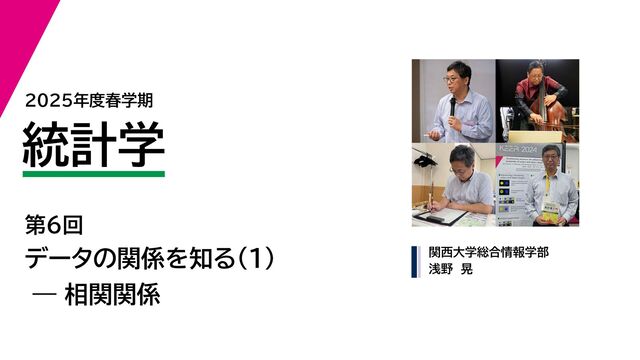 2025年度春学期 統計学 第6回 データの関係を知る(1)ー相関関係 (2025. 5. 15)