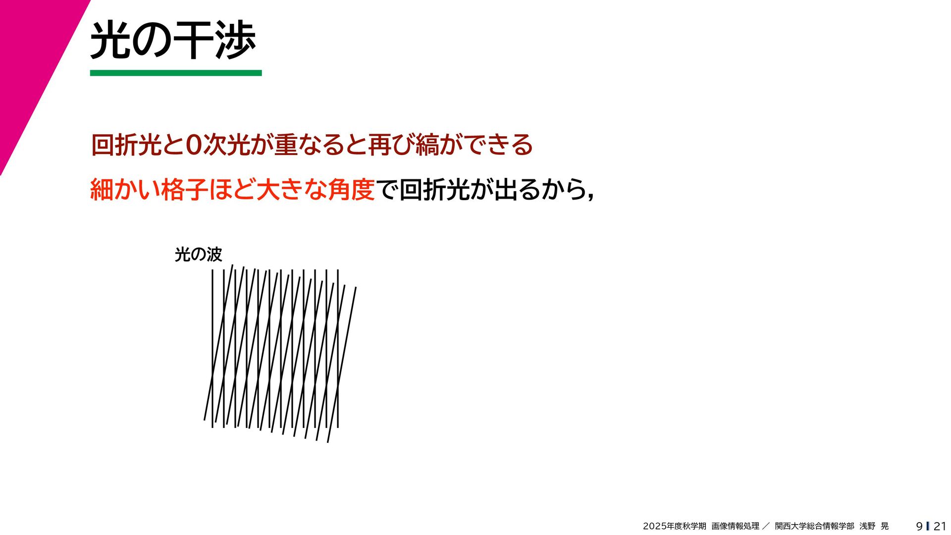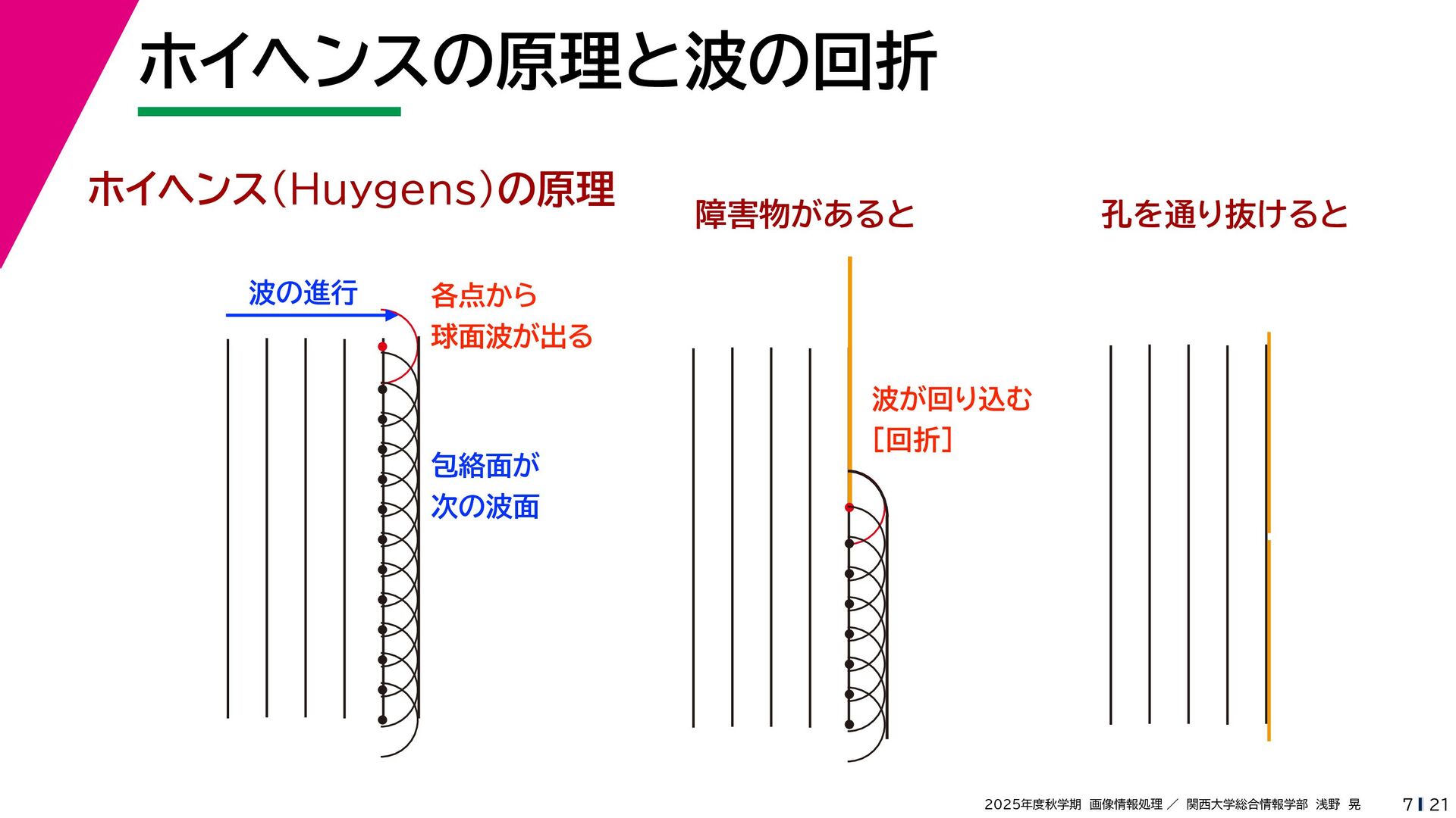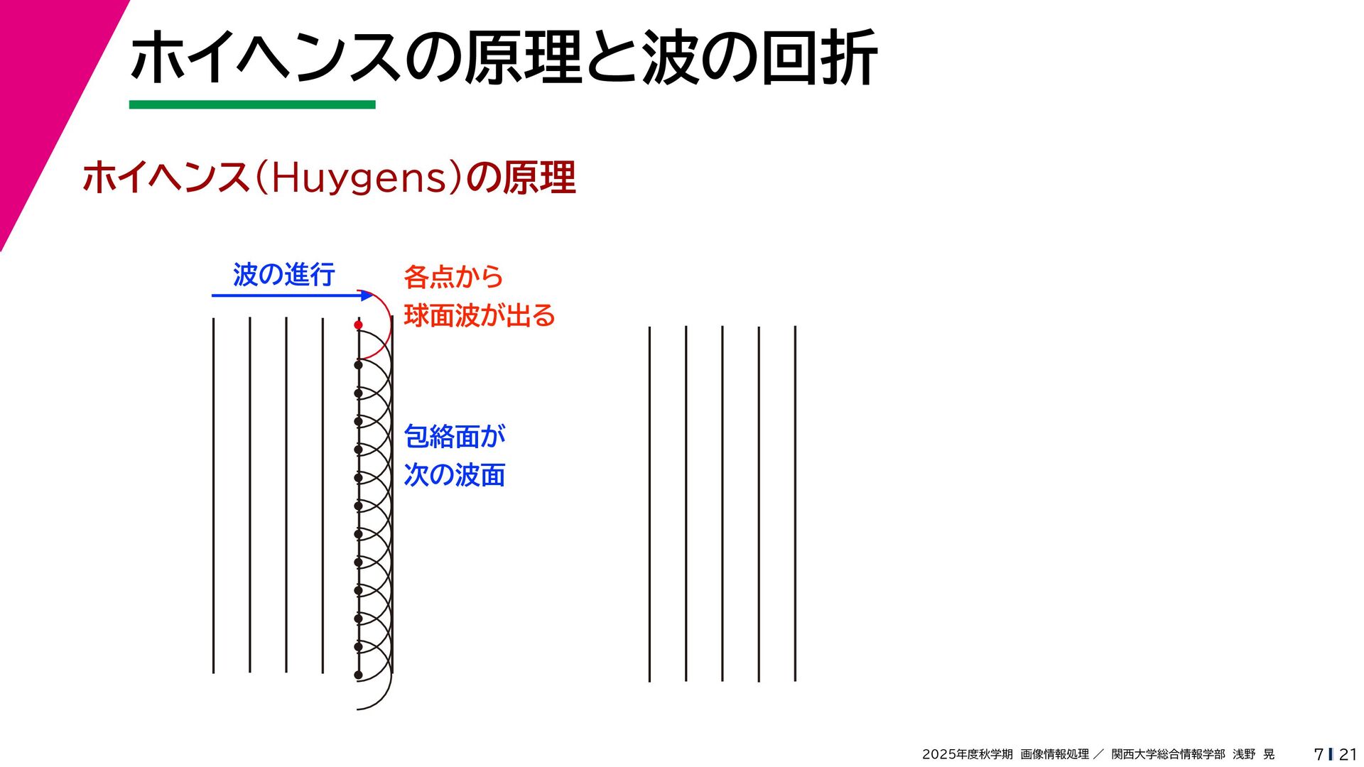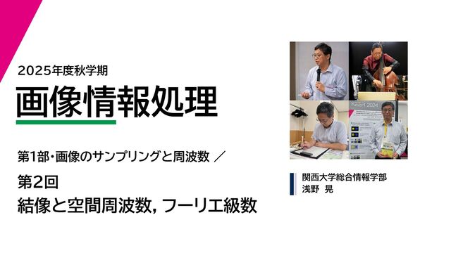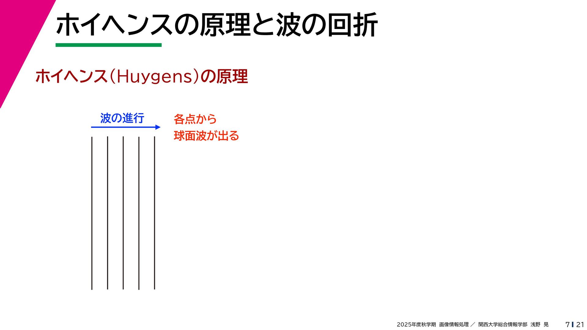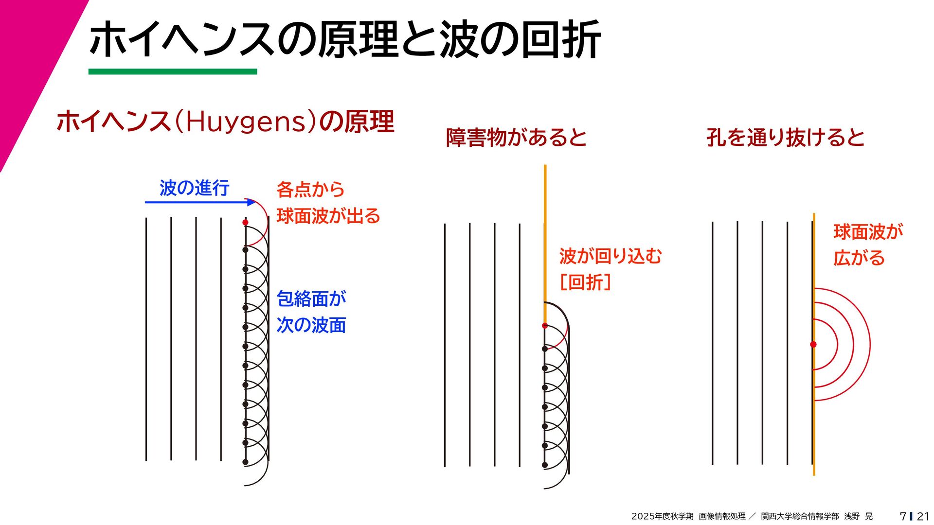 L / n の波を足し合わせて はず。 波長 L / n の波は f(x) = ∞ n=−∞ an exp i2π n L x という級数で書ける exp(i2π n L x) exp(−i2π n L x) と の組 プラスもマイナスも∞(プラスとマイナスの組で1つの波だから) この係数はどうやって求めるの? 続きは次回。 これがフーリエ級数なんですが,