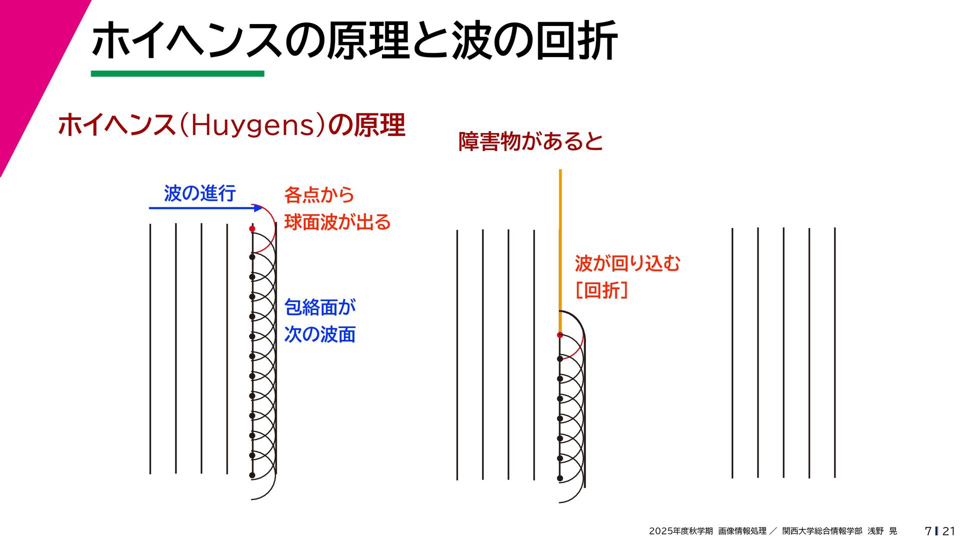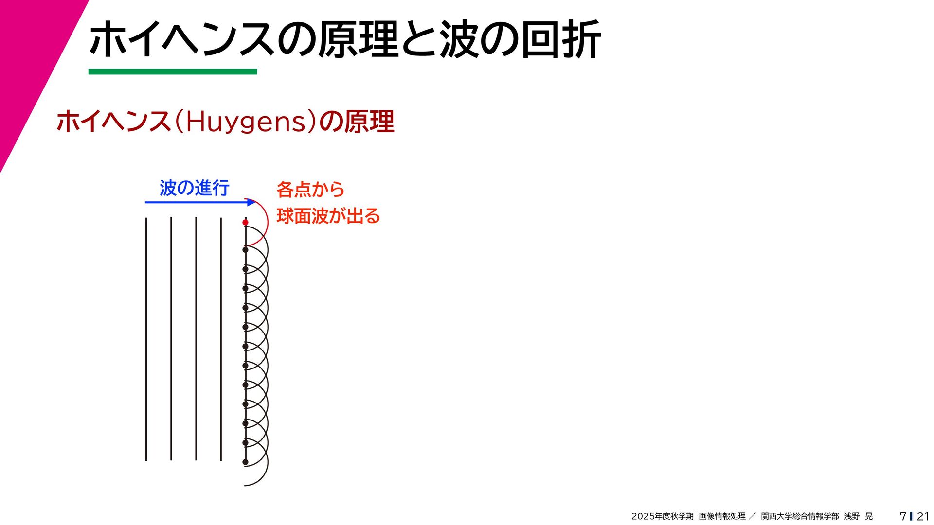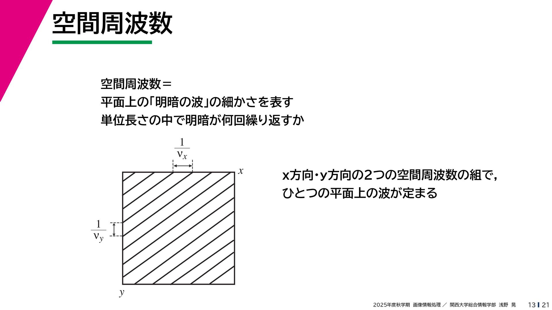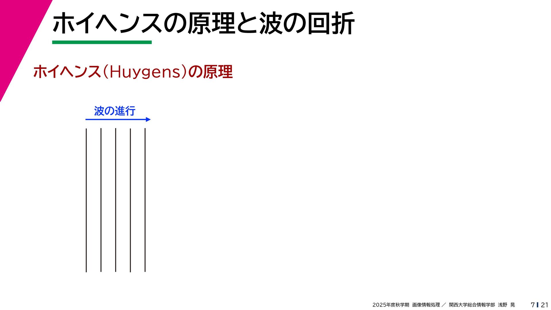 L / n の波を足し合わせて はず。 波長 L / n の波は f(x) = ∞ n=−∞ an exp i2π n L x という級数で書ける exp(i2π n L x) exp(−i2π n L x) と の組 プラスもマイナスも∞(プラスとマイナスの組で1つの波だから) この係数はどうやって求めるの? 続きは次回。 これがフーリエ級数なんですが,