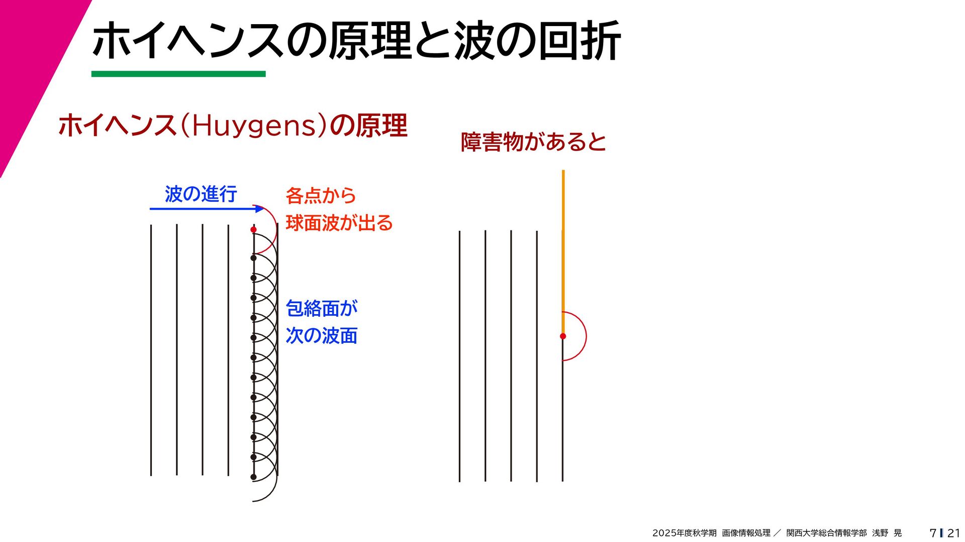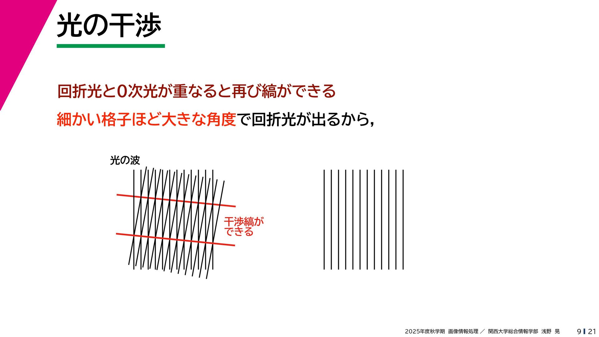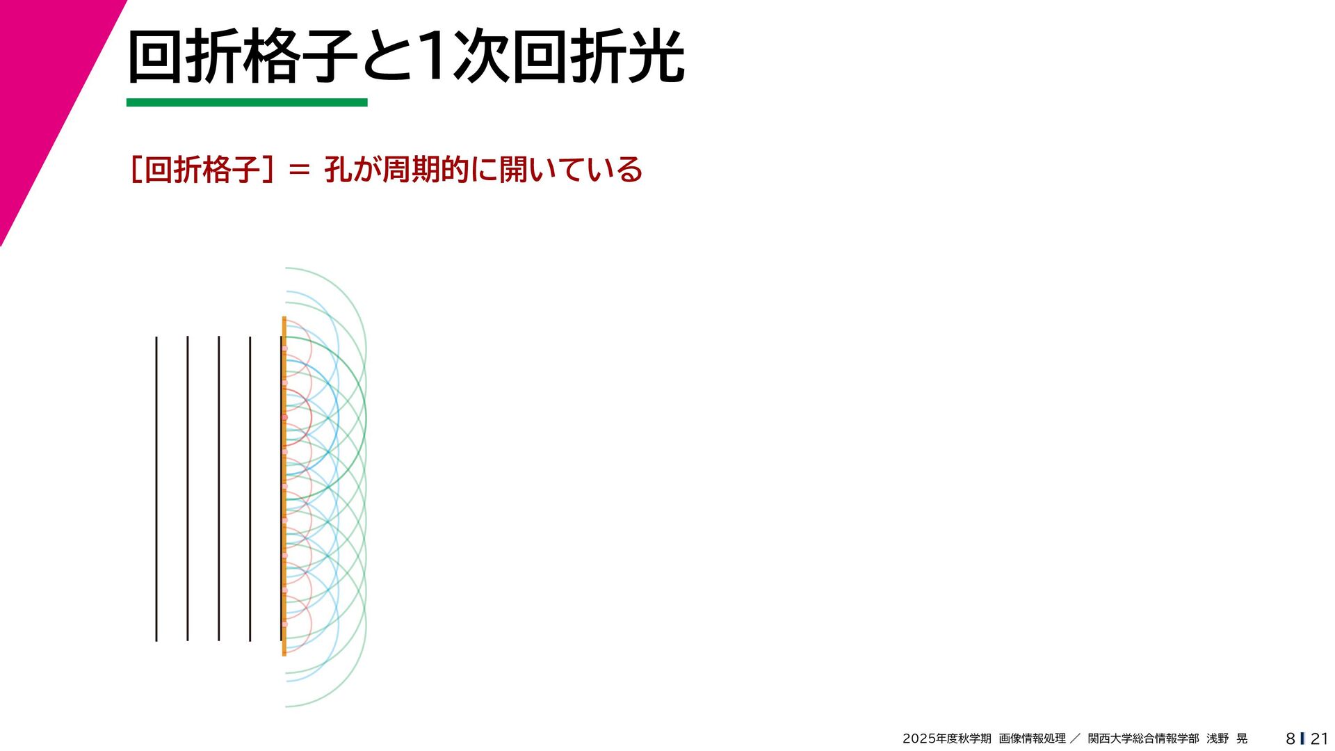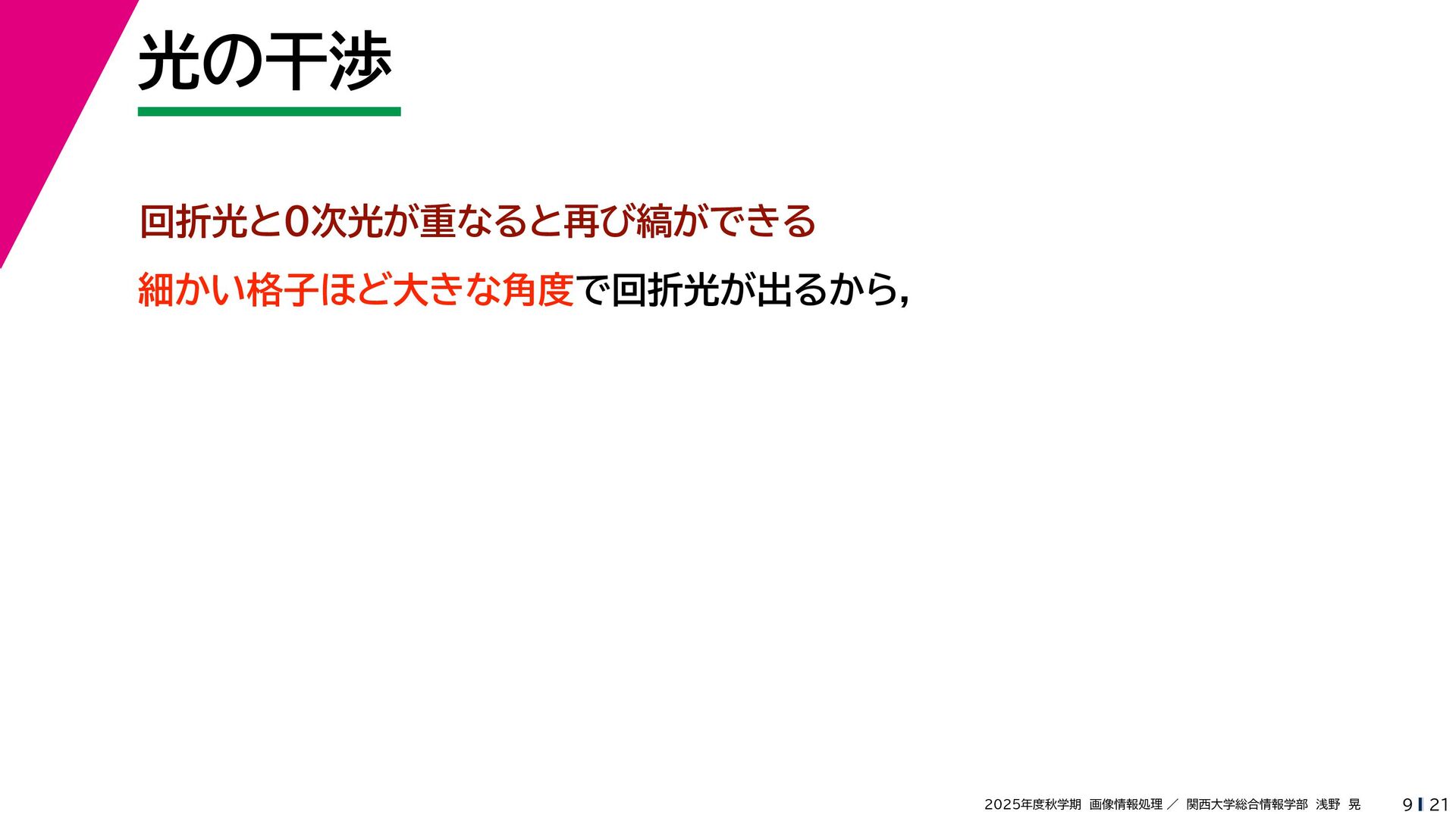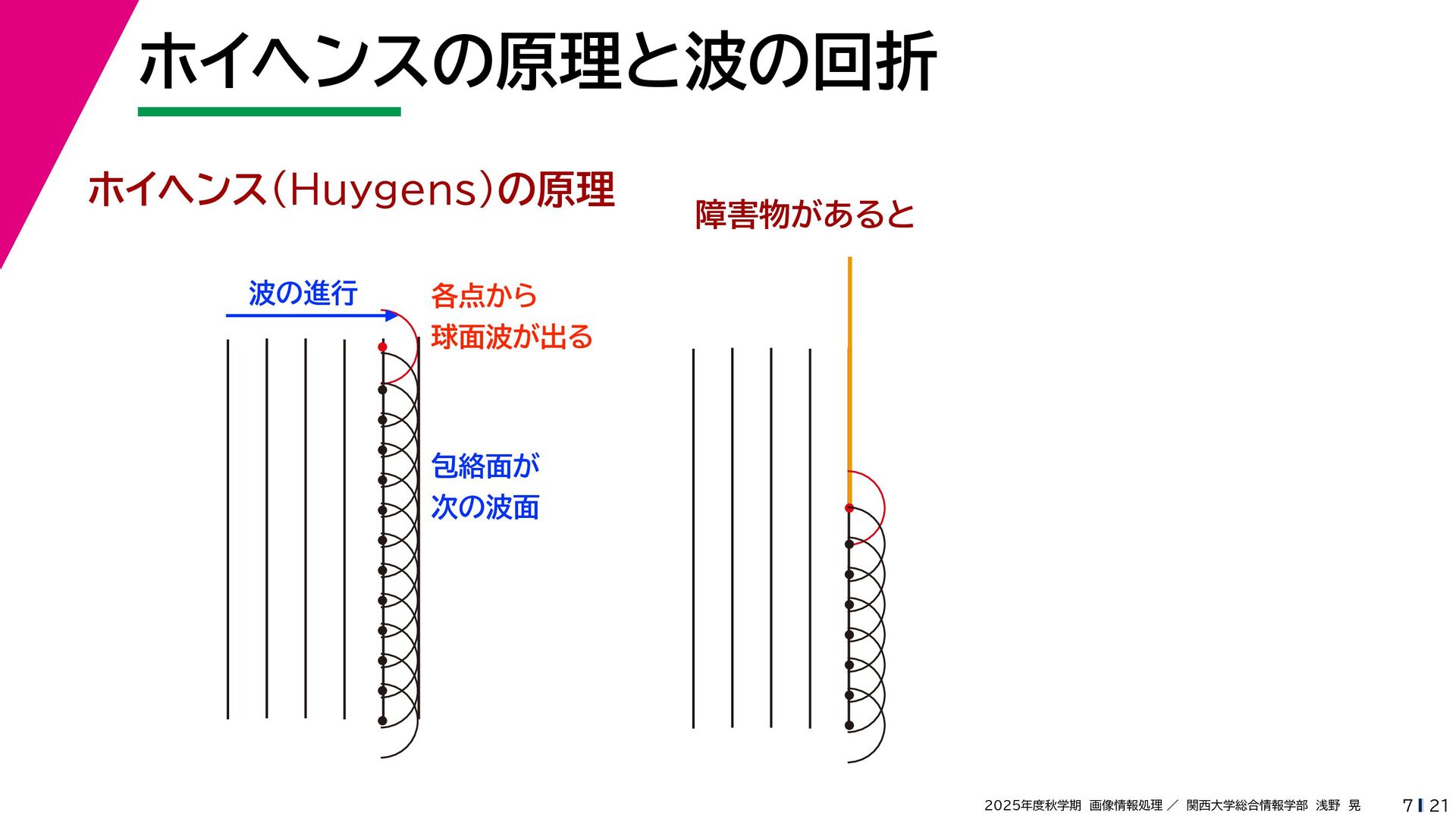 L / n の波を足し合わせて はず。 波長 L / n の波は f(x) = ∞ n=−∞ an exp i2π n L x という級数で書ける exp(i2π n L x) exp(−i2π n L x) と の組 プラスもマイナスも∞(プラスとマイナスの組で1つの波だから) この係数はどうやって求めるの? 続きは次回。 これがフーリエ級数なんですが,