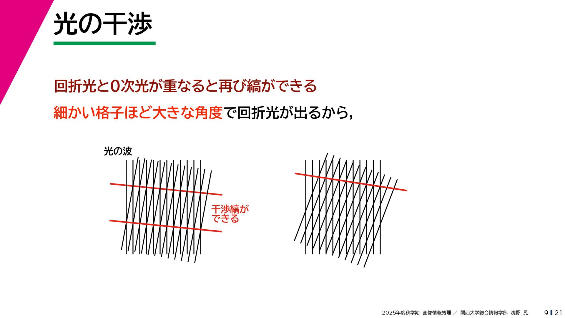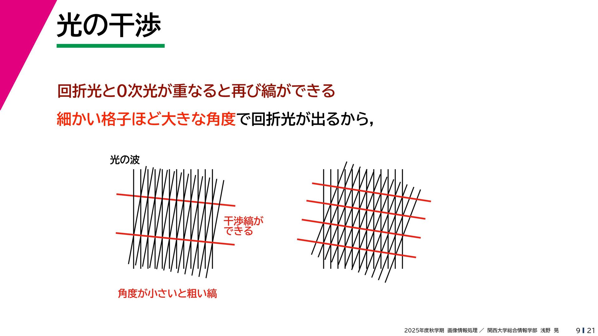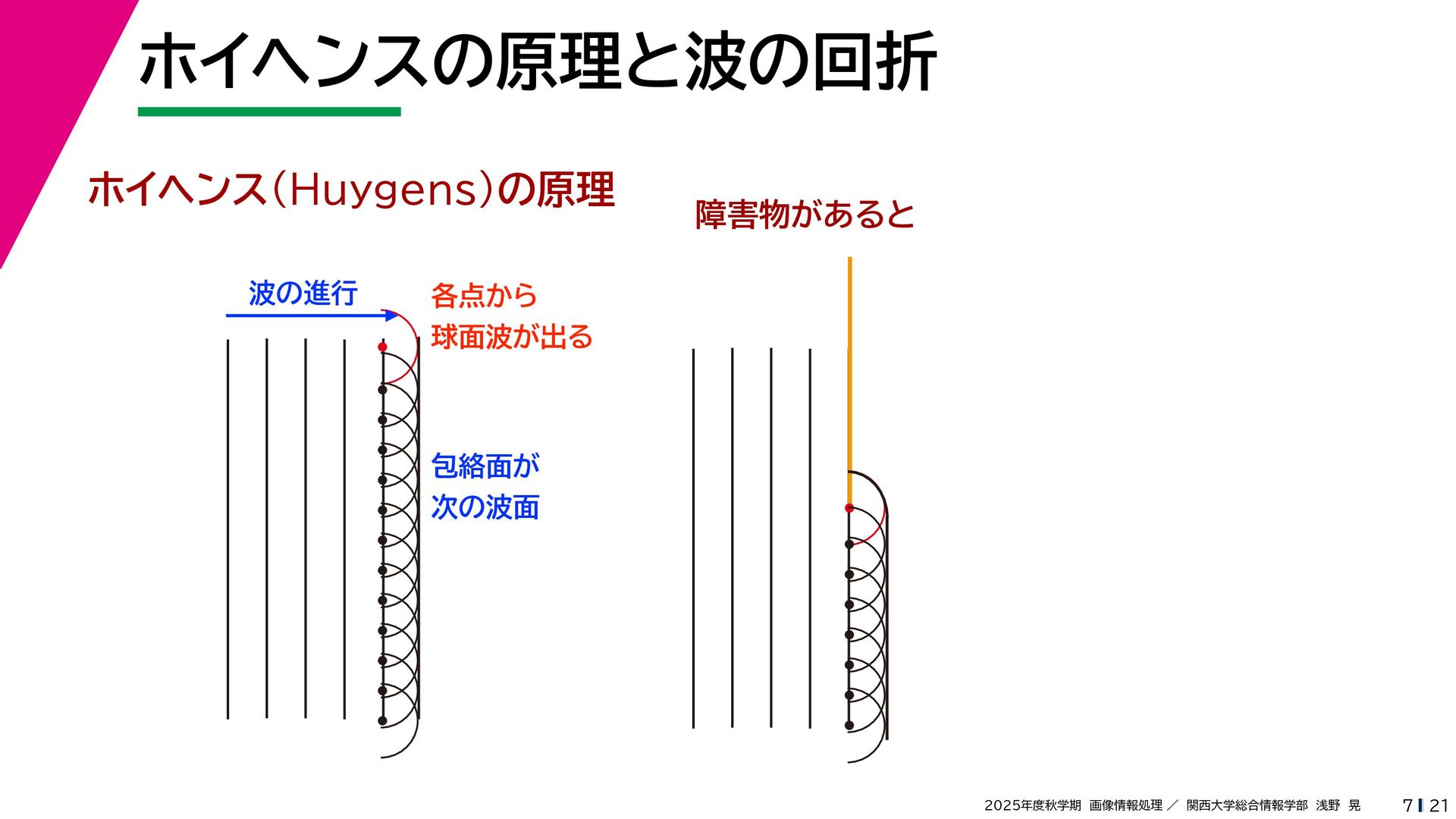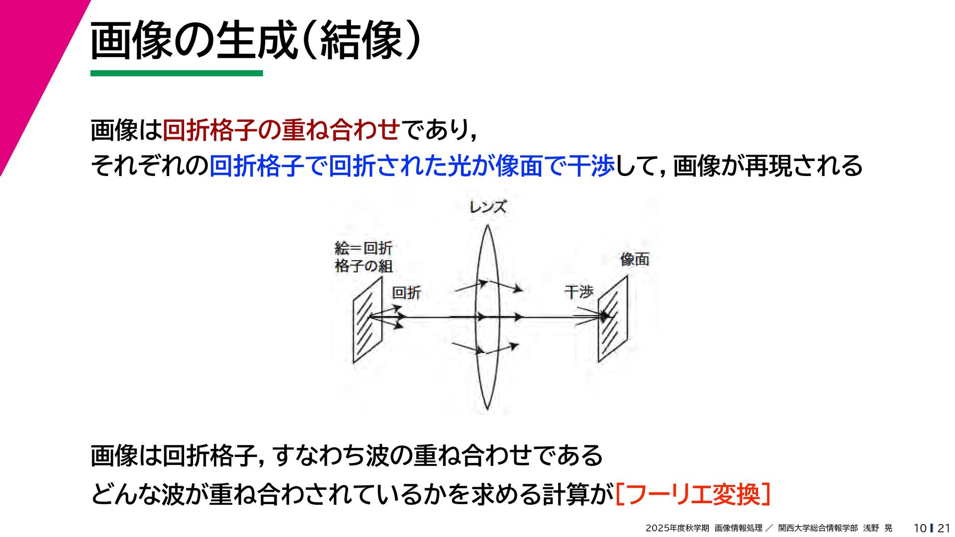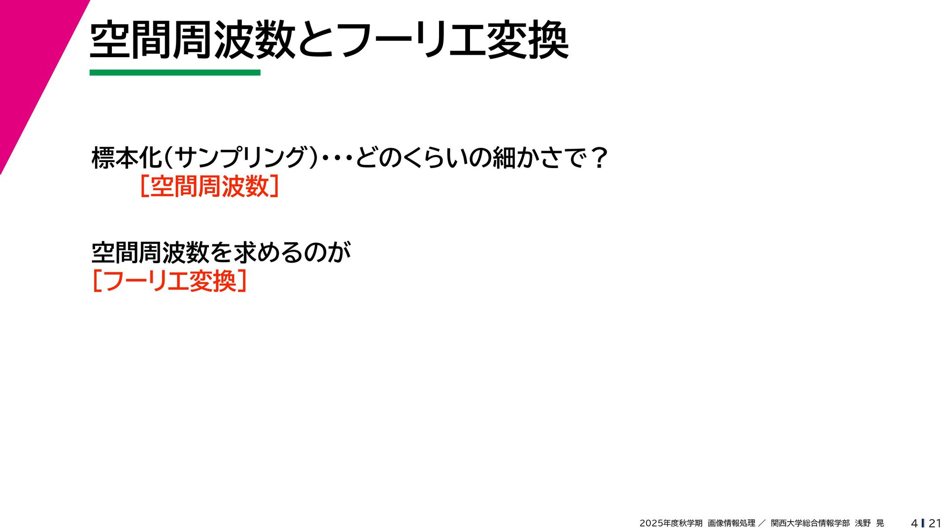L / n の波を足し合わせて はず。 波長 L / n の波は f(x) = ∞ n=−∞ an exp i2π n L x という級数で書ける exp(i2π n L x) exp(−i2π n L x) と の組 プラスもマイナスも∞(プラスとマイナスの組で1つの波だから) この係数はどうやって求めるの? 続きは次回。 これがフーリエ級数なんですが,