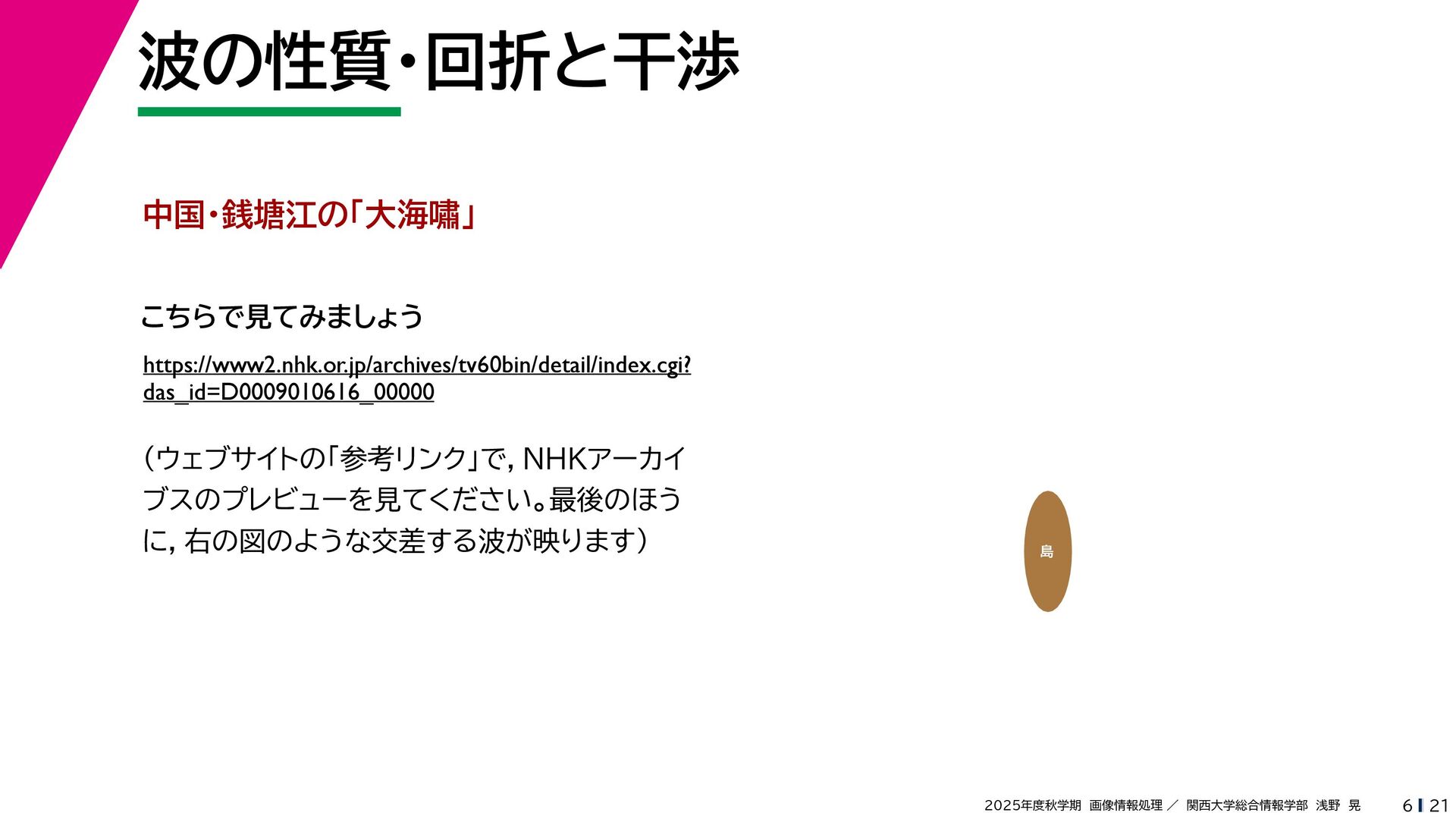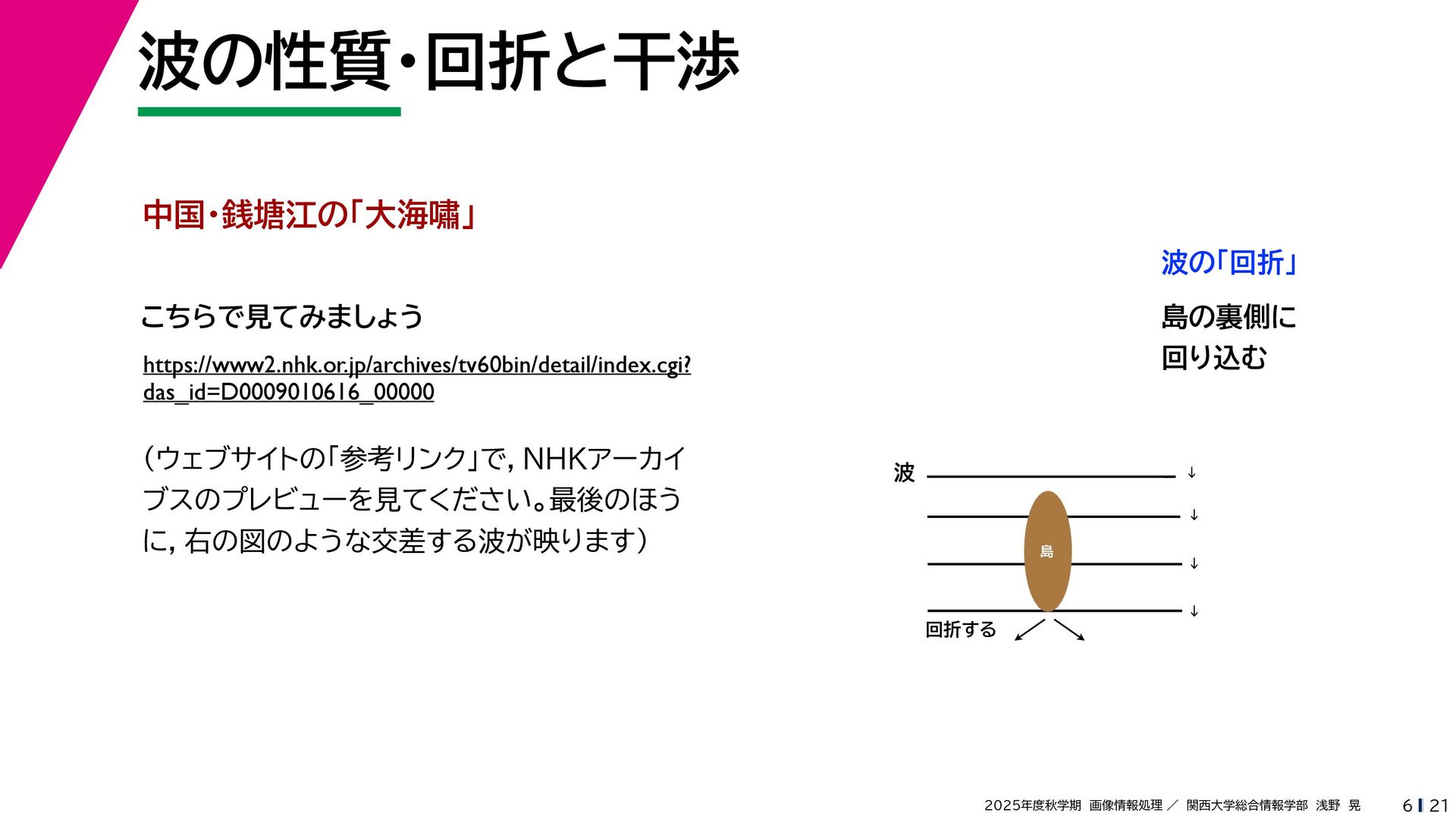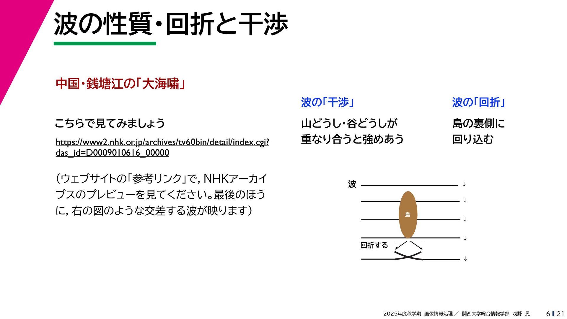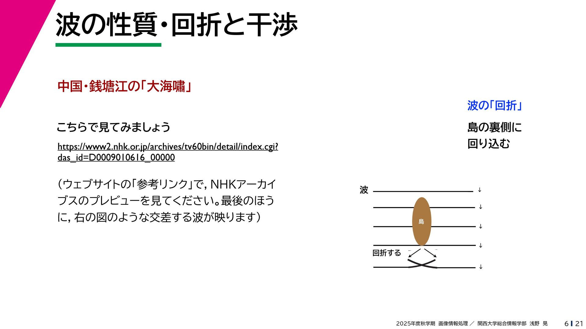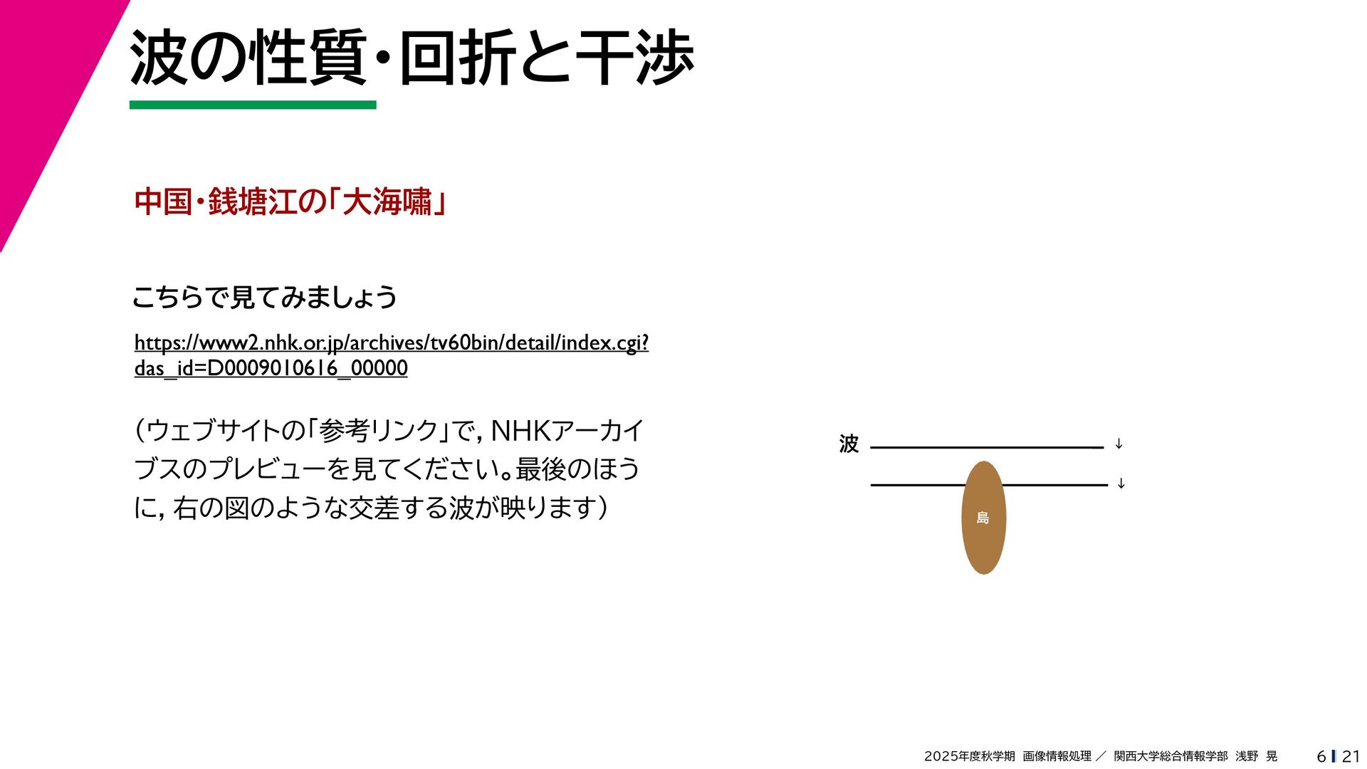 L / n の波を足し合わせて はず。 波長 L / n の波は f(x) = ∞ n=−∞ an exp i2π n L x という級数で書ける exp(i2π n L x) exp(−i2π n L x) と の組 プラスもマイナスも∞(プラスとマイナスの組で1つの波だから) この係数はどうやって求めるの? 続きは次回。 これがフーリエ級数なんですが,