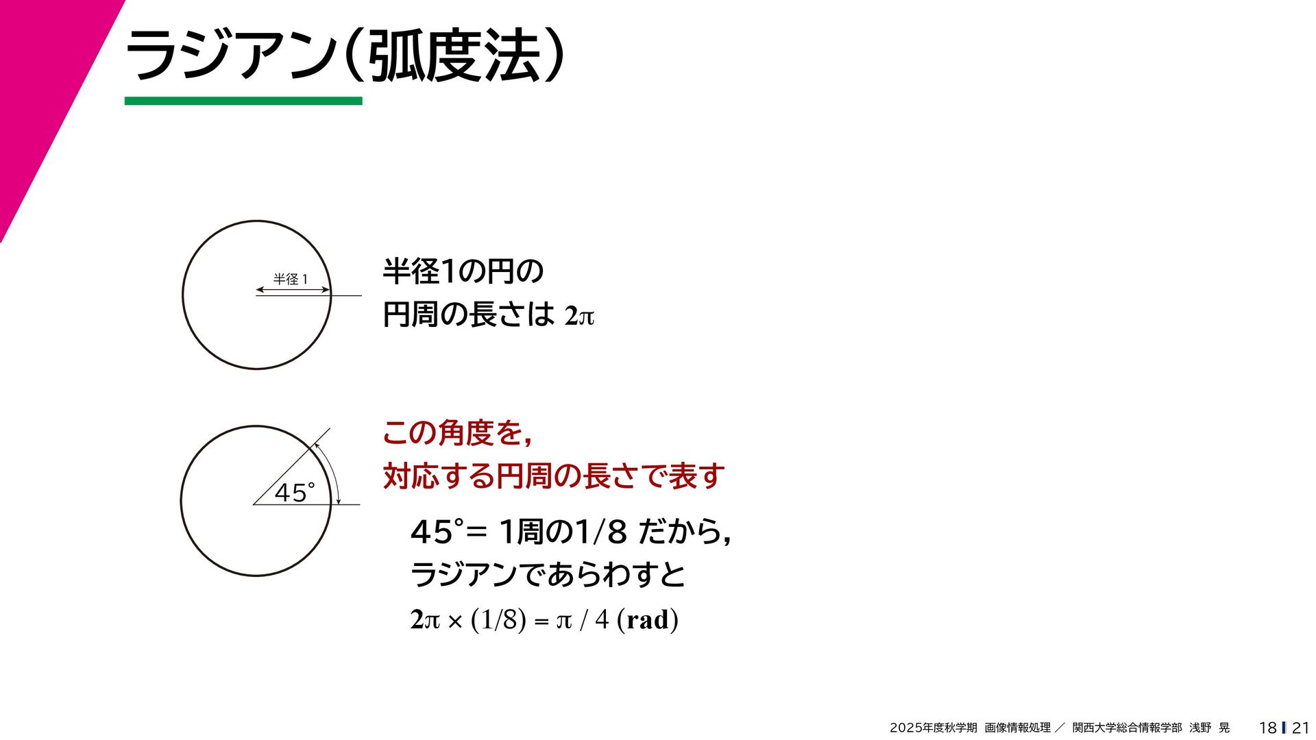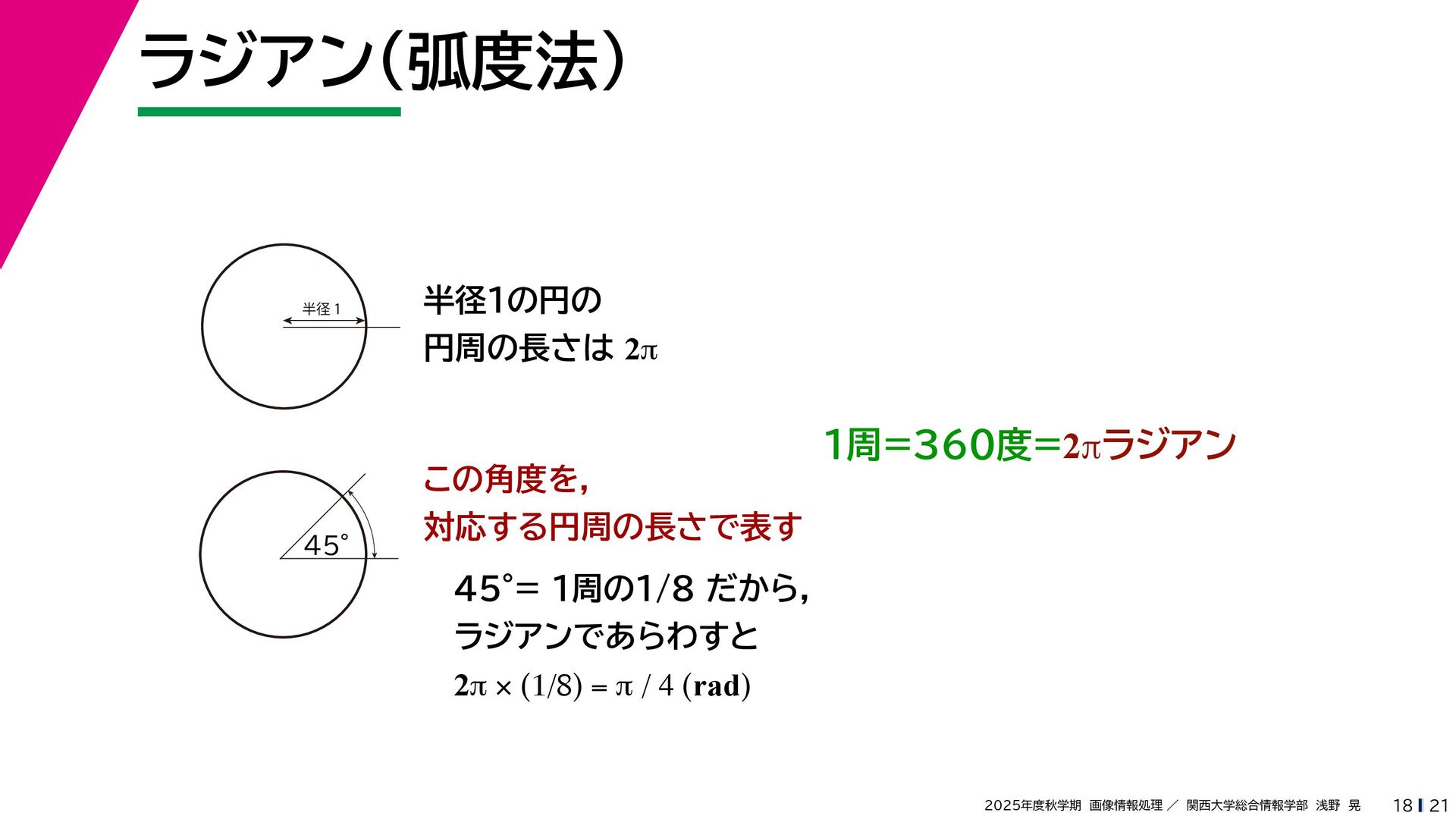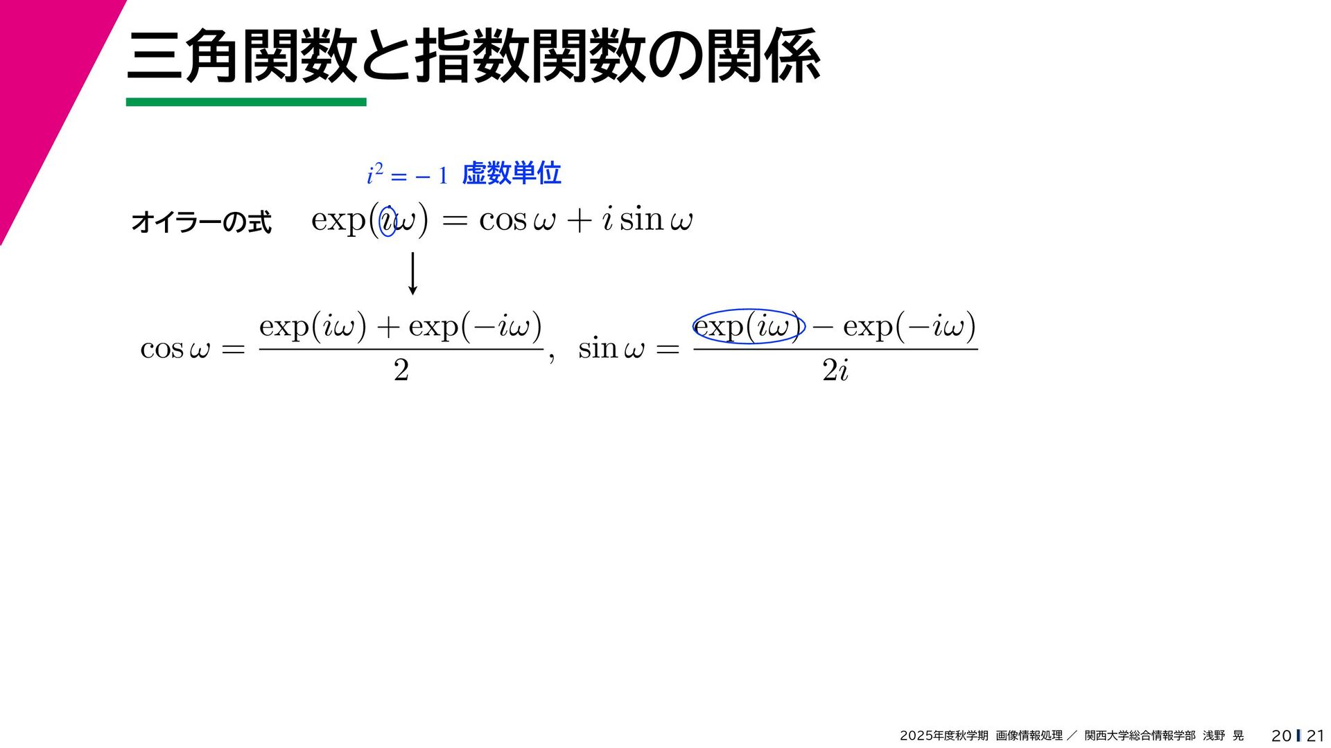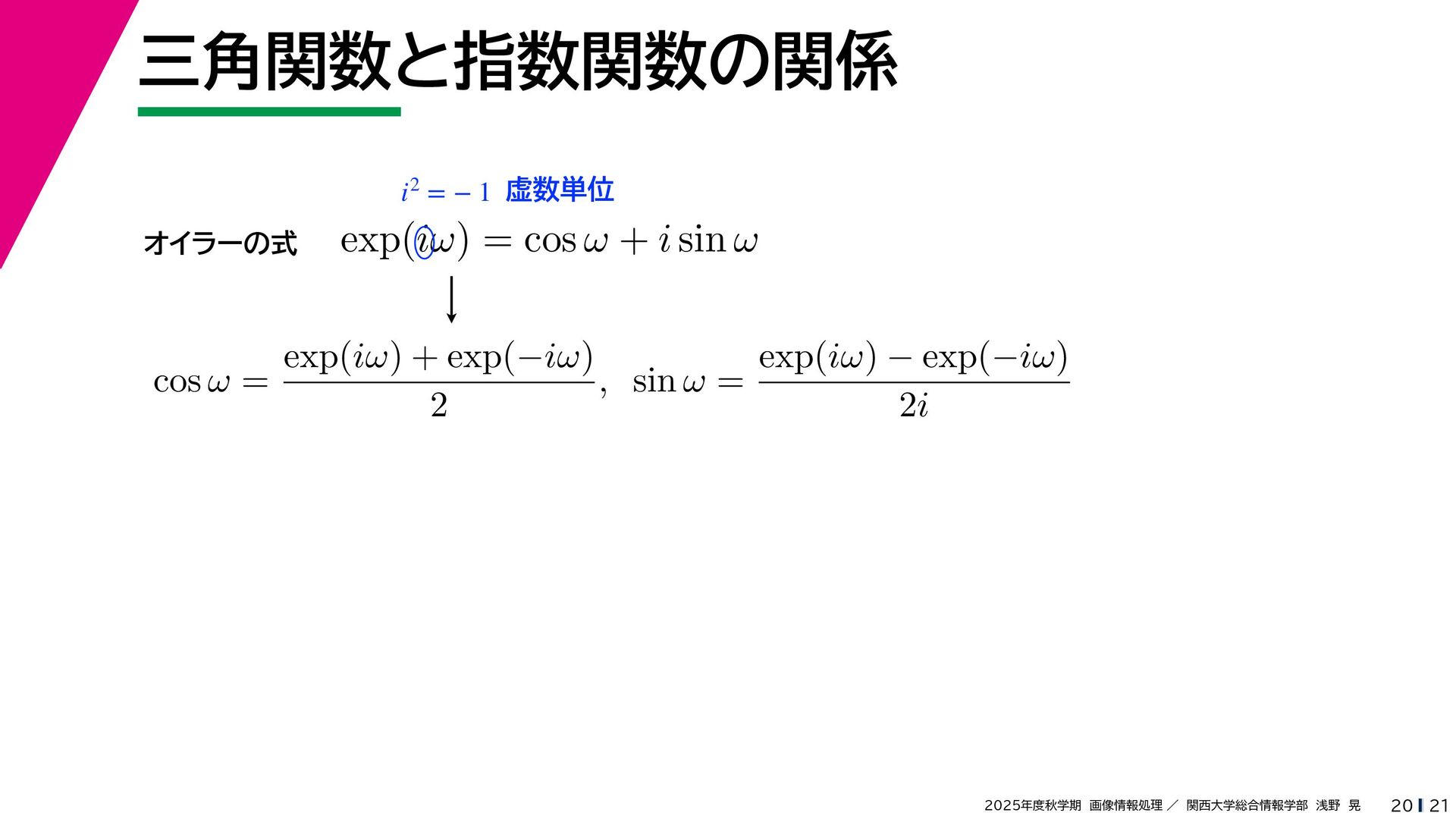 a0 + a1 cos(2π 1 L x) + a2 cos(2π 2 L x) + … + an cos(2π n L x) + … 波長 L 波長 L/2 波長 L/n cos x cos y = 1 2 {cos(x + y) + cos(x − y)} axay = ax+y かけ算=指数の足し算