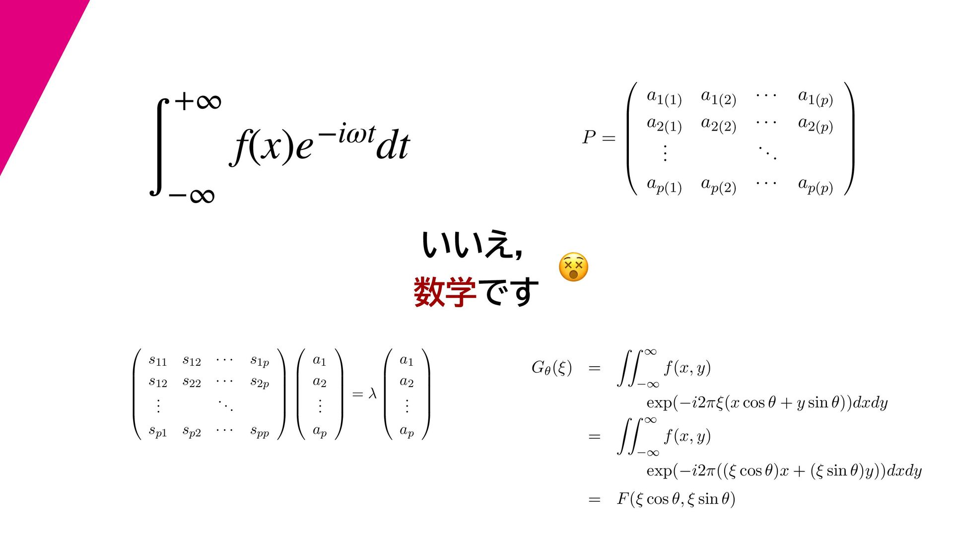 いいえ, 数学です 😵😵 ∫ +∞ −∞ f(x)e−iωtdt P = ⎛