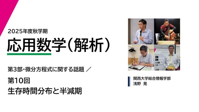 2025年度秋学期 応用数学(解析) 第10回 生存時間分布と半減期 (2025. 11. 28)