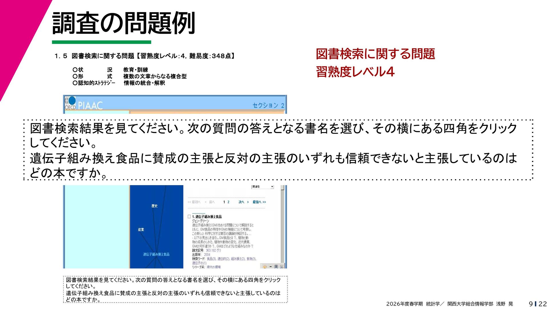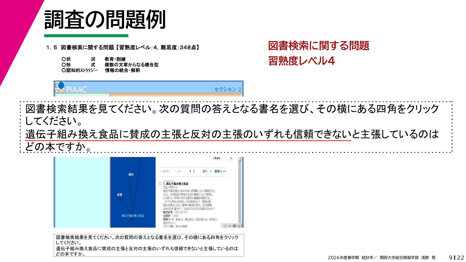 2. 22 2026年度春学期 統計学/ 関西大学総合情報学部 浅野 晃 調査の問題例 9 1 1. .5 5 図 図書