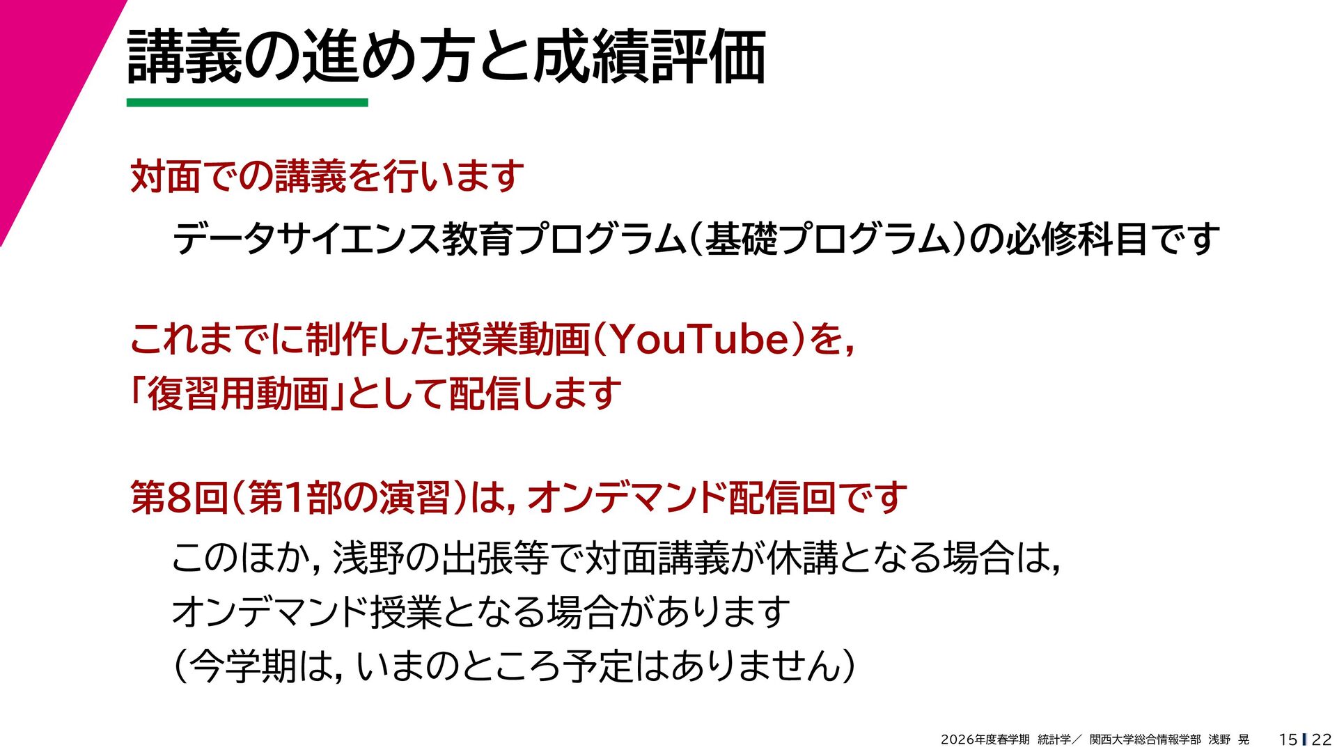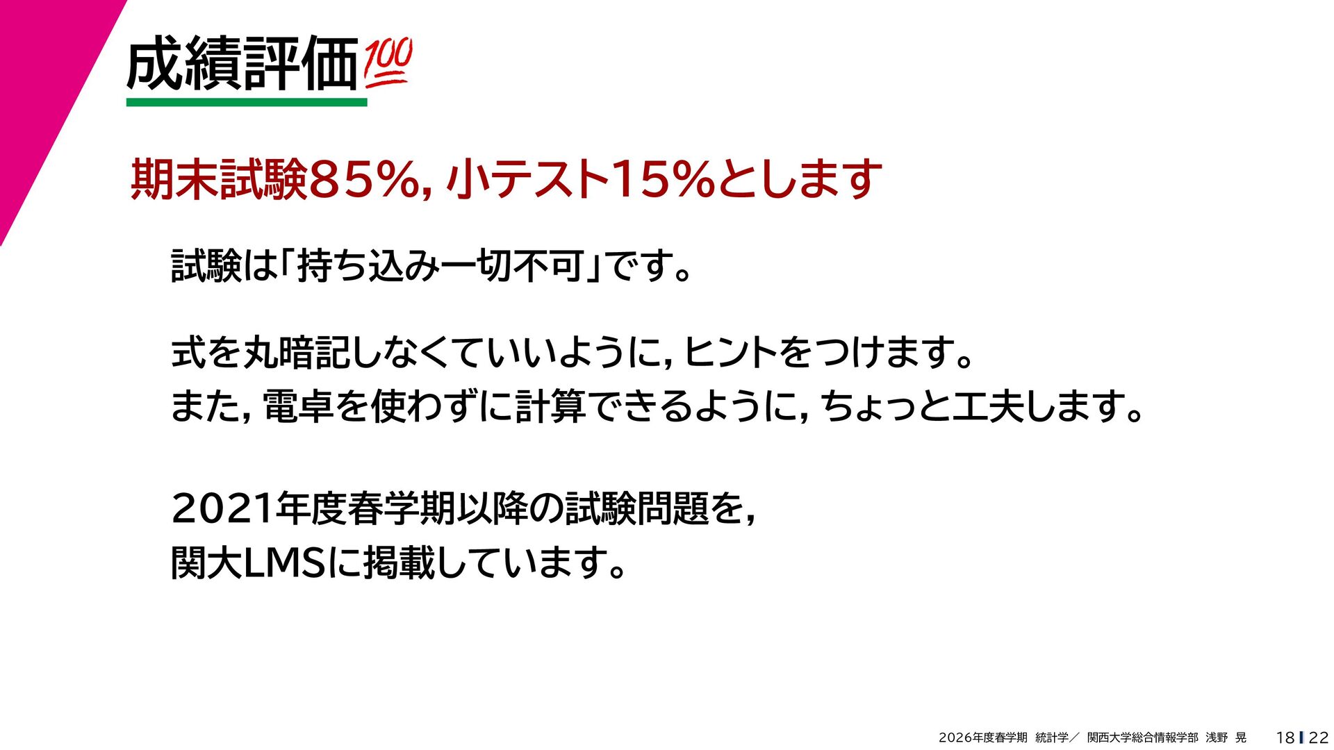 2026年度春学期 統計学 講義の進め方と成績評価について (2026. 4. 9)