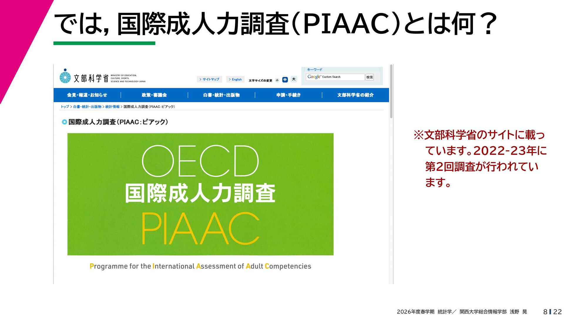 関西大学総合情報学部 統計学(担当・浅野晃)
