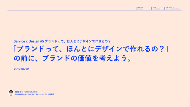 T I V E T E A M P U B L I S H E D B Y P O R T ! # 5 D A T E 2 0 1 6 . 1 2 . 0 7 P R O J E C T fukuoka@ficc.jp / FICC inc. / BXΫϦΤΠςΟϒࣄۀ෦ Ԭཅ'VLVPLB"LJSB ʮϒϥϯυͬͯɺ΄ΜͱʹσβΠϯͰ࡞ΕΔͷʁʯ ͷલʹɺϒϥϯυͷՁΛߟ͑Α͏ɻ 2017.06.12 4FSWJDFY%FTJHOϒϥϯυͬͯɺ΄ΜͱʹσβΠϯͰ࡞ΕΔͷʁ