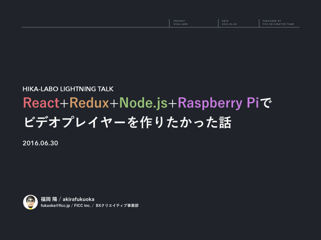 T I V E T E A M P U B L I S H E D B Y H I K A - L A B O D A T E 2 0 1 6 . 0 6 . 3 0 P R O J E C T HIKA-LABO LIGHTNING TALK 3FBDU 3FEVY /PEFKT 3BTQCFSSZ1JͰ ϏσΦϓϨΠϠʔΛ࡞Γ͔ͨͬͨ GVLVPLB!pDDKQ'*$$JOD#9ΫϦΤΠςΟϒࣄۀ෦ 2016.06.30 ԬཅBLJSBGVLVPLB
