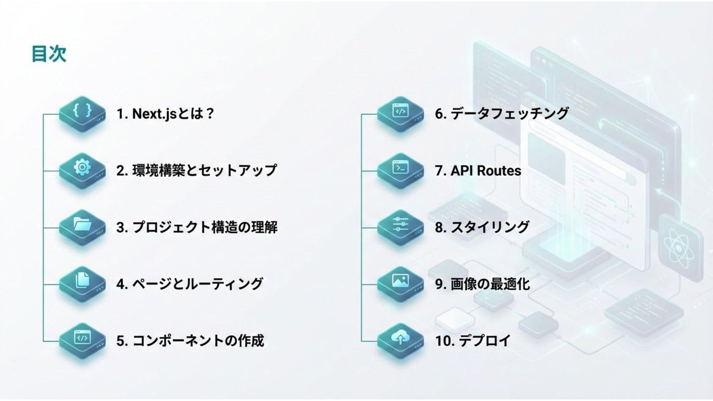 Next.jsを初めて学ぶ方のための完全入門ガイドです。