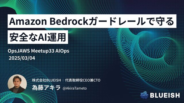 取ったユーザーへのフォロー(謝罪や回答再送) a CloudWatchアラームが発火 (ブロック回数急増、 またはブロック激減V a ユーザーからの「不適切回答があった」という通報 a 設定変更ミス、ガードレールの仕様上の限界、 モデルのバージョンアップによる動作変化など を洗い出h a ガードレール漏れが再発しないように運用ルー ルやチェック体制を修正 a 追加テストケースやレッドチーム評価の 実¤ a IAMポリシー・Configルールで「常に ガードレールを有効にする」強制ルール を導入す© a ユーザー通報フローの強化、開発チー ム・セキュリティチームとの連携プロセ ス見直し ②