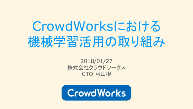 CrowdWorksにおける 機械学習活用 取り組み 2018/01/27 株式会社クラウドワークス CTO 弓山彬