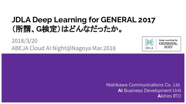 ABEJA Cloud AI Night@Nagoya Mar.2018 -- 201803 how about an exam which named jdla deep learning for general 2017