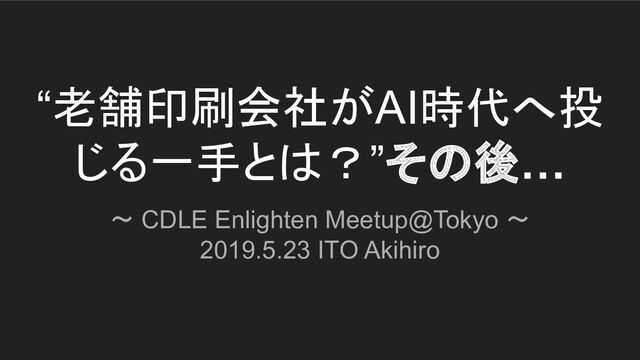 CDLE Enlighten Meetup@Tokyo -- “老舗印刷会社がAI時代へ投じる一手とは?”その後…