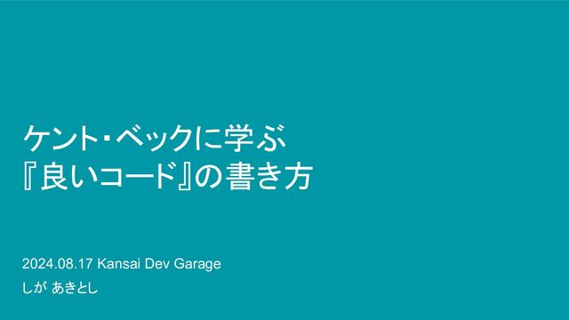 ケント・ベックに学ぶ 『良いコード』の書き方 2024.08.17 Kansai Dev Garage しが あきとし