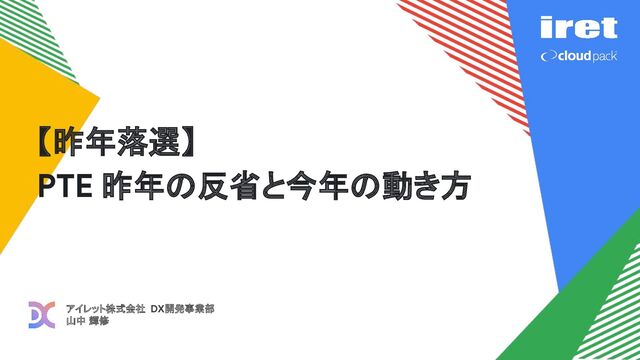 【昨年落選】 PTE 昨年の反省と今年の動き方 アイレット株式会社 DX開発事業部 山中 輝修