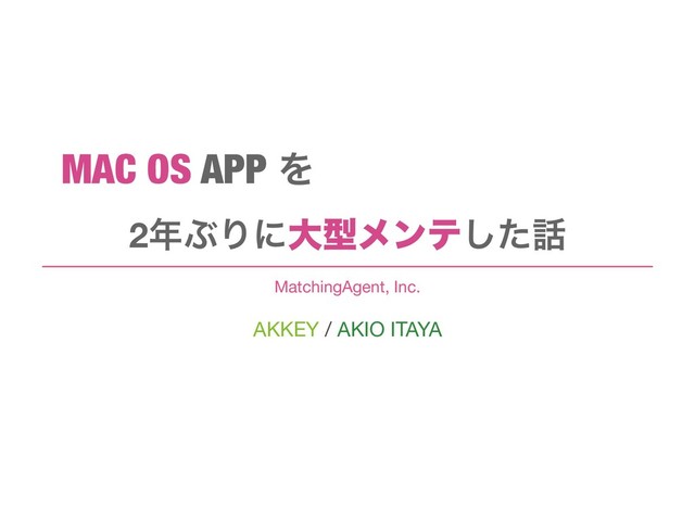 AKKEY / AKIO ITAYA MatchingAgent, Inc. 2ͿΓʹେܕϝϯςͨ͠ MAC OS APP