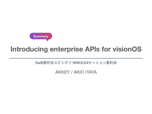 AKKEY / AKIO ITAYA Introducing enterprise APls for visionOS SwiftѪձεϐϯΦϑ