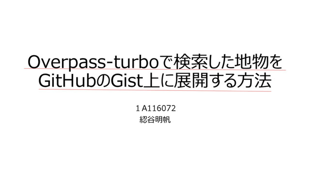 Overpass-turboで検索した地物を GitHubのGist上に展開する方法 1A116072 綛谷明帆