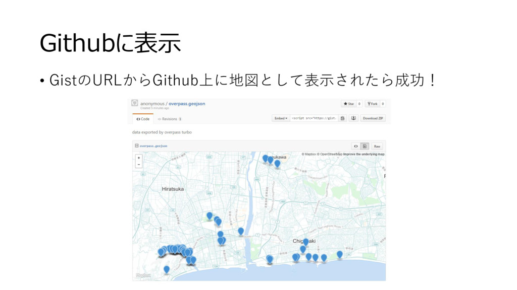 Githubに表示 • GistのURLからGithub上に地図として表示されたら成功!