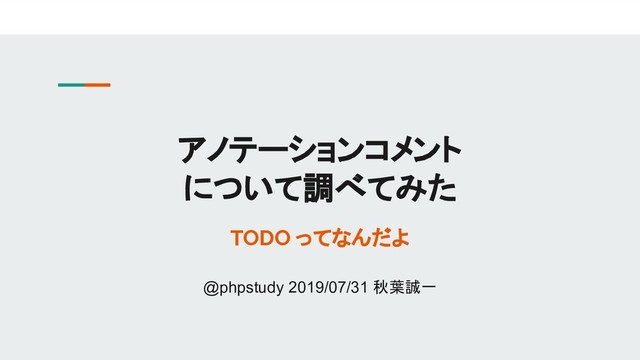 アノテーションコメント について調べてみた TODO ってなんだよ @phpstudy 2019/07/31 秋葉誠一