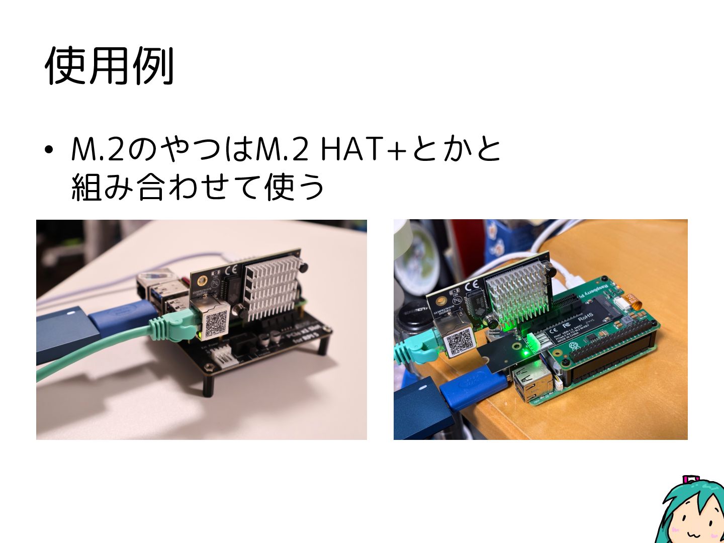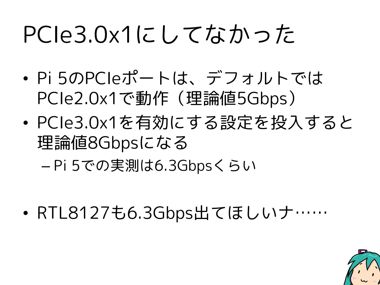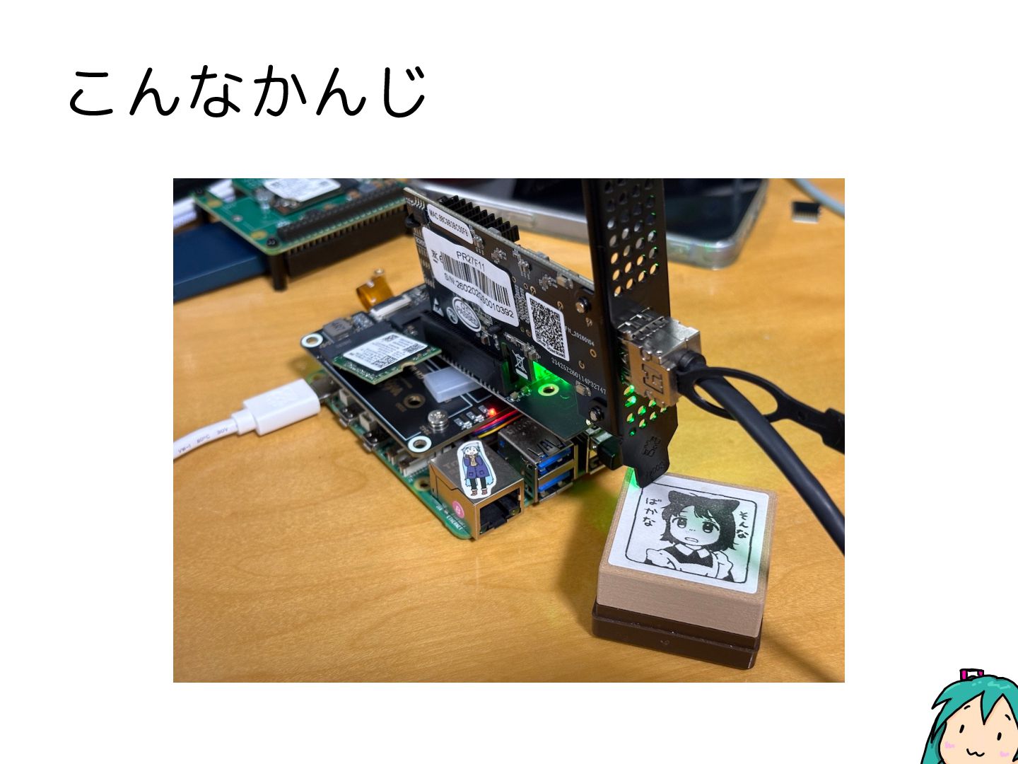 5. ラズピッピ(Pi 5)で使おう • Pi 5のPCIeスロットから普通の PCIeスロットにするやつを適宜用意 • 52Piのやつが確実 • M.2スロットから変換するやつは