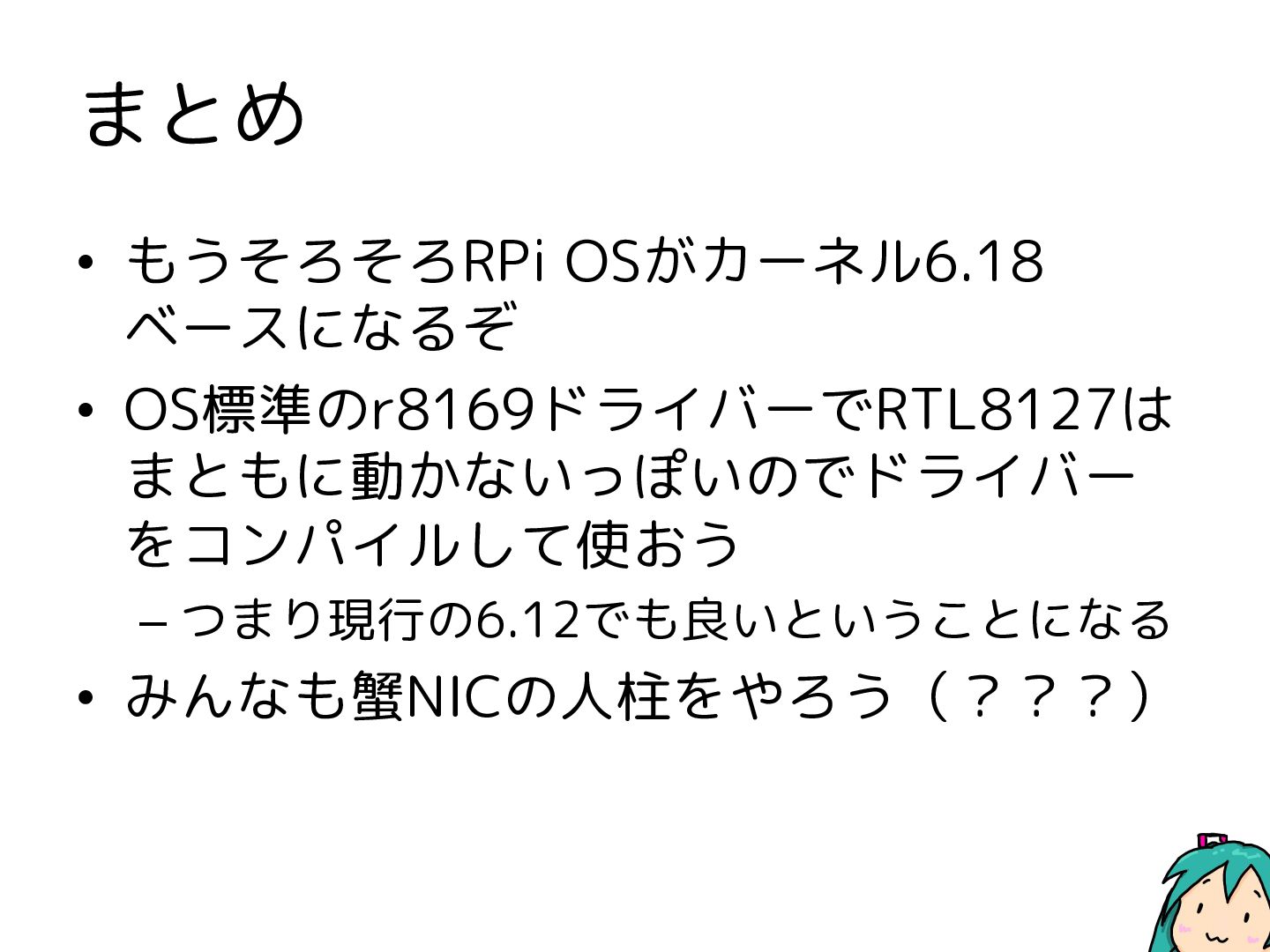 2. RPi OS Kernel 6.18 soon • https://forums.raspberrypi.com/viewt opic.php?t=394580 • 1月くらいからベータ的にやってたらしい